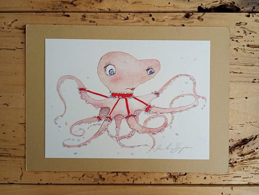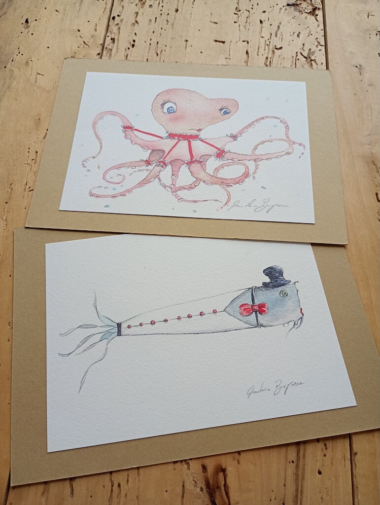 Le dipingo ad acquerello, lasciando che ogni velatura porti con sé un soffio di leggerezza, un sorriso, un frammento di buonumore che spero arrivi agli occhi – e al cuore – di chi osserva. La stampa in vendita è una stampa digitale su carta tamburata. Viene spedita in un cartoncino color avana che protegge con cura gli angoli durante il viaggio e che, una volta arrivata, può trasformarsi in un piccolo passepartout.