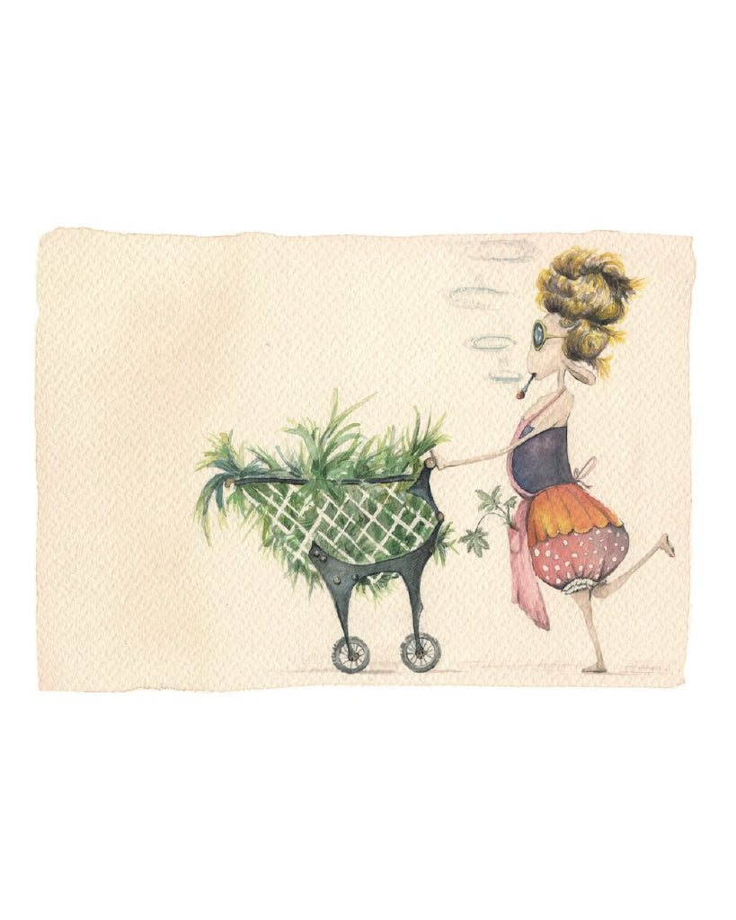 Le dipingo ad acquerello, lasciando che ogni velatura porti con sé un soffio di leggerezza, un sorriso, un frammento di buonumore che spero arrivi agli occhi – e al cuore – di chi osserva. La stampa in vendita è una stampa digitale su carta tamburata. Viene spedita in un cartoncino color avana che protegge con cura gli angoli durante il viaggio e che, una volta arrivata, può trasformarsi in un piccolo passepartout.
