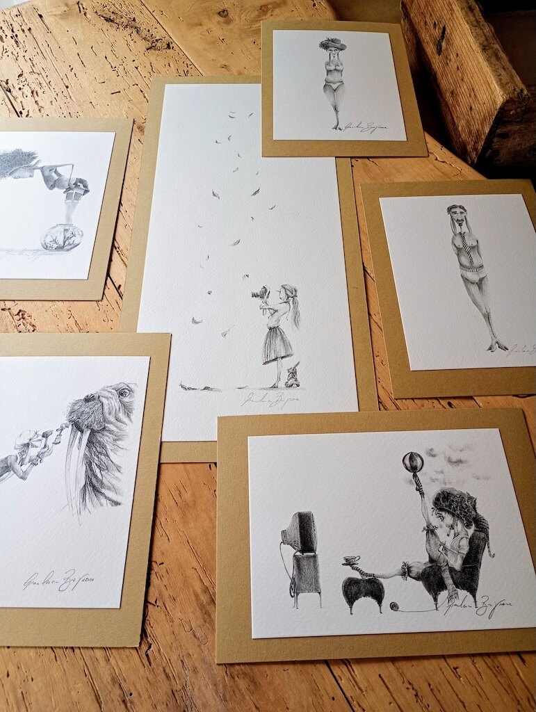 Le dipingo ad acquerello, lasciando che ogni velatura porti con sé un soffio di leggerezza, un sorriso, un frammento di buonumore che spero arrivi agli occhi – e al cuore – di chi osserva. La stampa in vendita è una stampa digitale su carta tamburata. Viene spedita in un cartoncino color avana che protegge con cura gli angoli durante il viaggio e che, una volta arrivata, può trasformarsi in un piccolo passepartout.