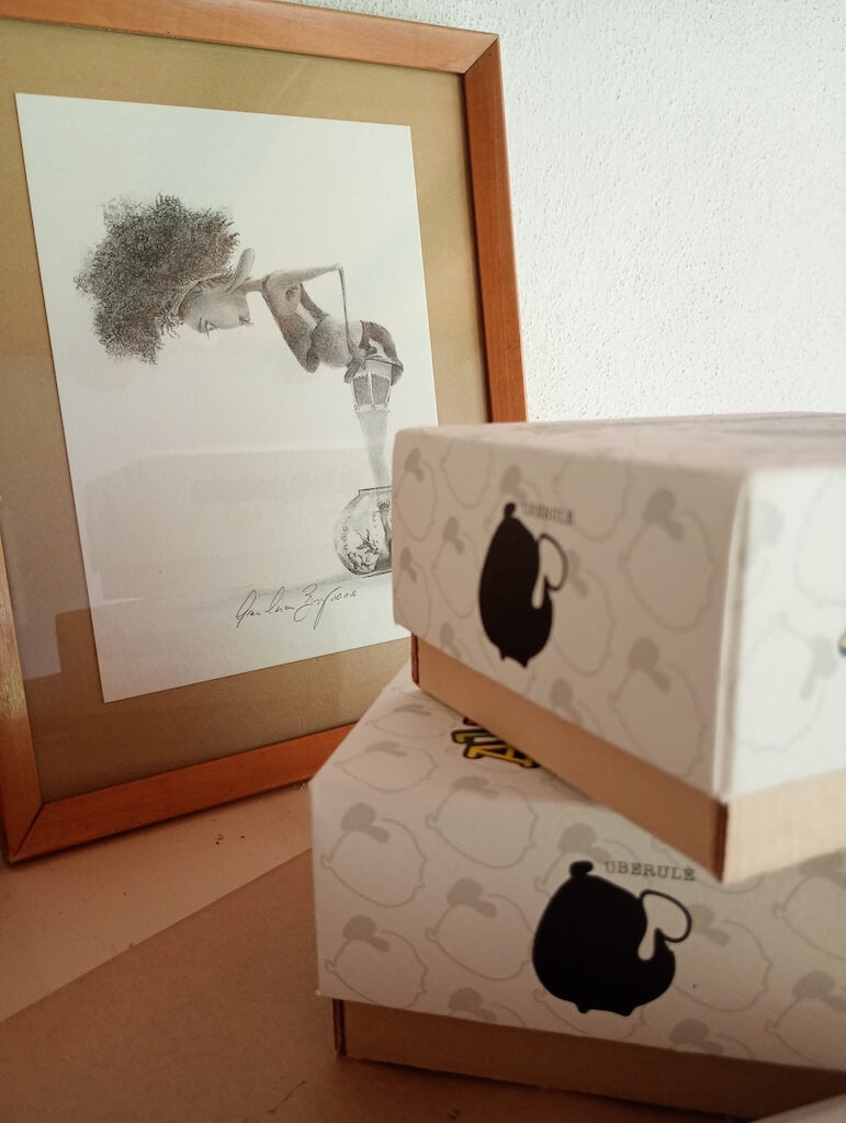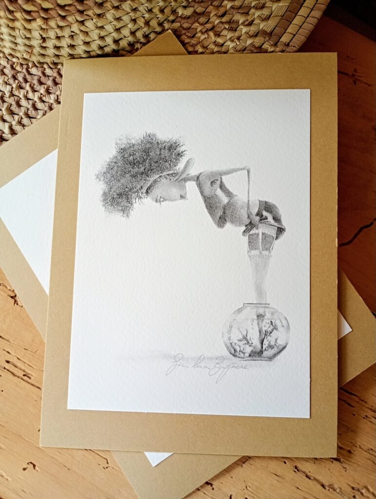 Le dipingo ad acquerello, lasciando che ogni velatura porti con sé un soffio di leggerezza, un sorriso, un frammento di buonumore che spero arrivi agli occhi – e al cuore – di chi osserva. La stampa in vendita è una stampa digitale su carta tamburata. Viene spedita in un cartoncino color avana che protegge con cura gli angoli durante il viaggio e che, una volta arrivata, può trasformarsi in un piccolo passepartout.